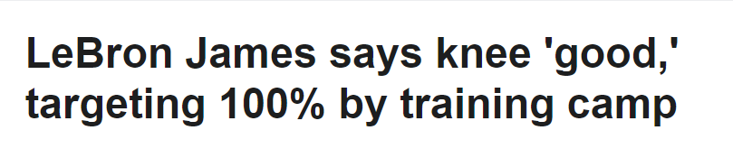 北京时间6月17日,在准备开启自己第23个NBA赛季之际,湖人巨星勒布朗-詹姆斯接受美联社的专访。他表示,他的首要任务是让左膝在训练营开始前及时恢复健康。